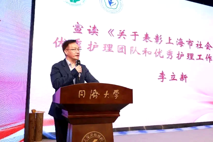 (圖二)上海市社會(huì)醫(yī)療機(jī)構(gòu)協(xié)會(huì)秘書長(zhǎng)李立新宣讀《關(guān)于表彰上海市社會(huì)醫(yī)療機(jī)構(gòu)優(yōu)秀護(hù)理團(tuán)隊(duì)和優(yōu)秀護(hù)理工作者的決定》
