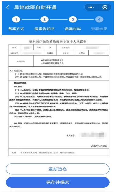 仔細閱讀承諾書相關條款,確認無誤后簽署姓名,點擊【保存并提交】,并再次點擊【提交備案】。
